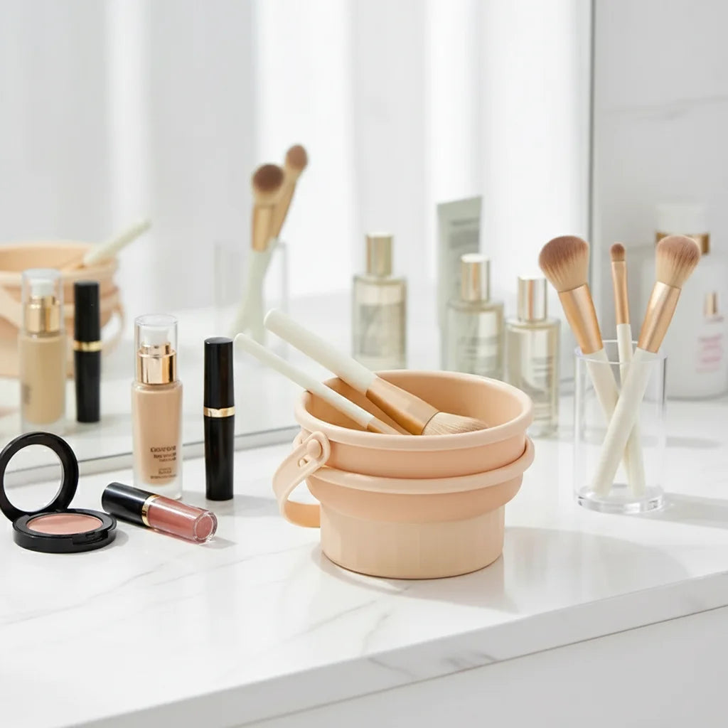 Absolutely! The collapsible design makes it incredibly compact and portable. It folds flat, taking up minimal space in your luggage or makeup bag, so you can maintain perfectly clean brushes wherever your adventures take you. Beauty on the go, simplified!